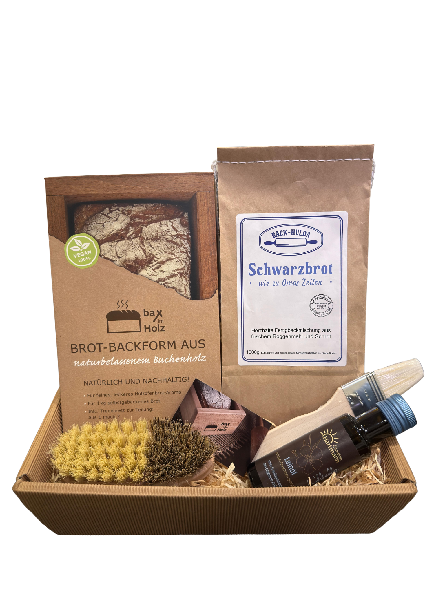 Bax im Holz Geschenk-Set mit Backmischung „Schwarzbrot“